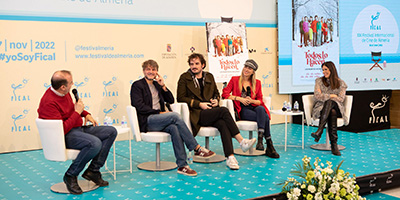 FICAL ha reunido en una mesa redonda a cuatro profesionales que han rodado en Almería para que compartan sus experiencias. Moderados por Puy Oria, esta tarde han participado los directores Montxo Armendáriz y Óskar Santos y los actores Eulalia Ramón y Óscar Higares.